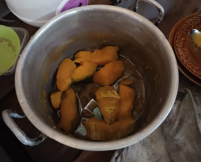 “Gak ada lagi beras. Cuma itu, buah labu, dikasih orang kemarin,” kata Fatimah.